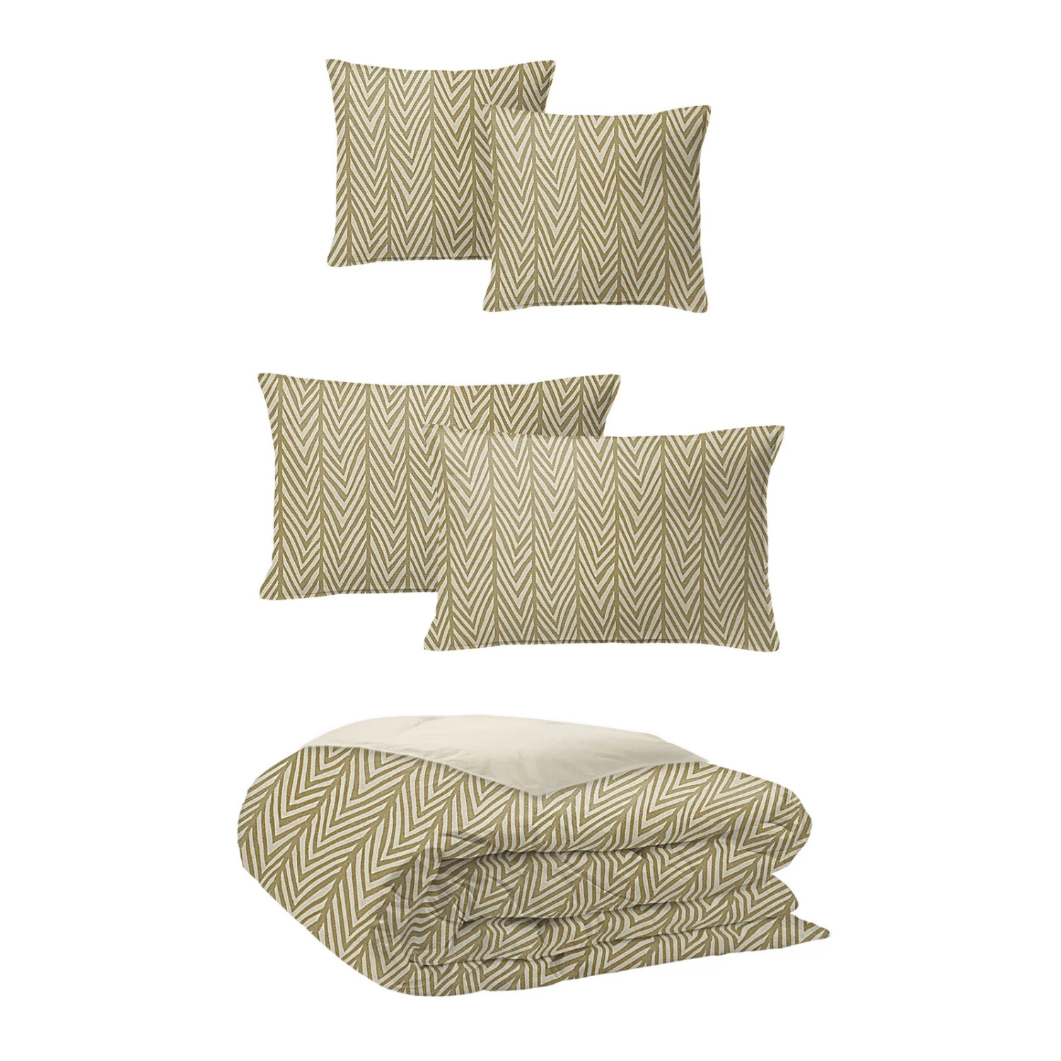 - Fabric Content: 100% Polyester Jacquard, reversing to ivory 100% Cotton Percale.