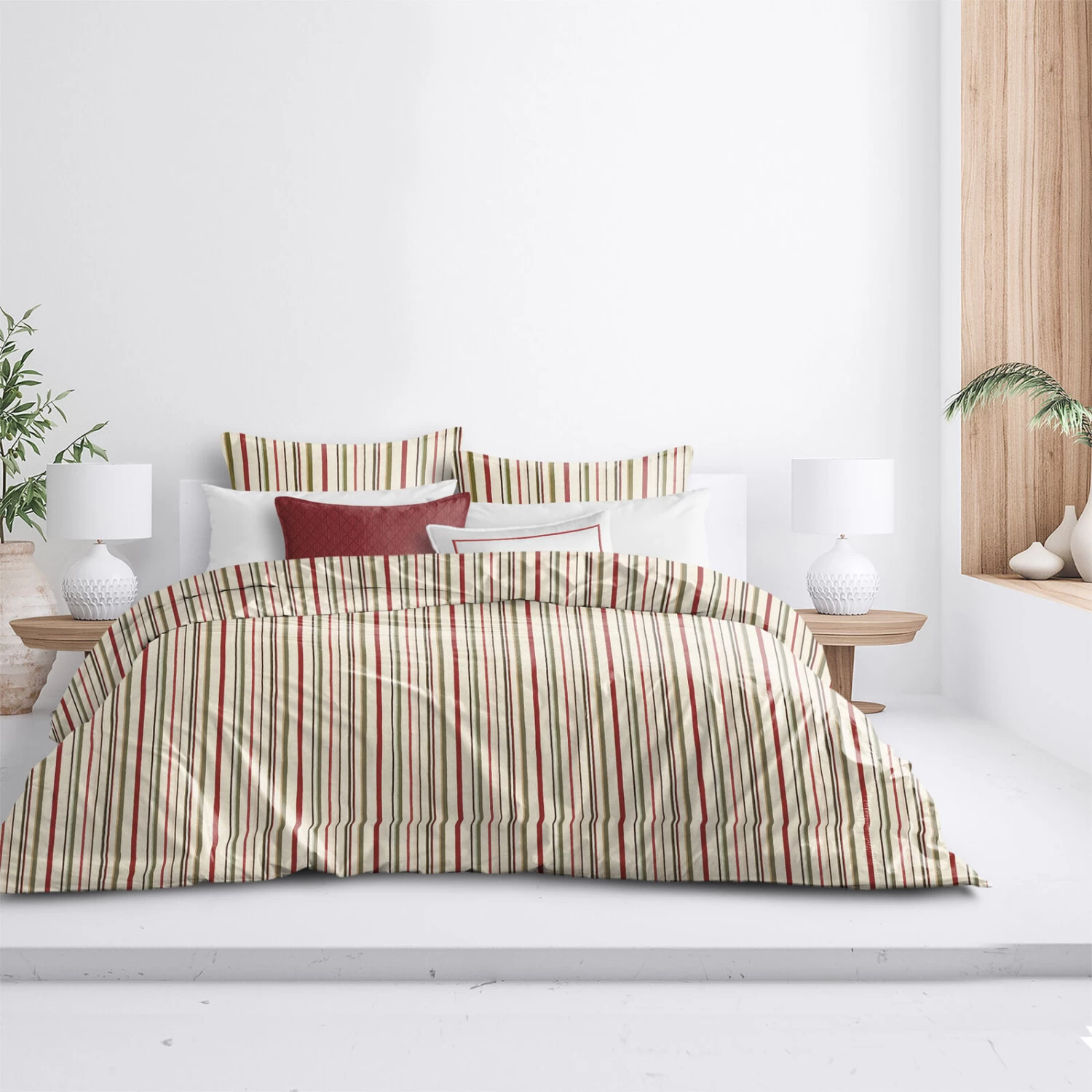 - Fabric Content 51% Cotton 49% Polyester, reversing to Ivory 100% Cotton Percale.