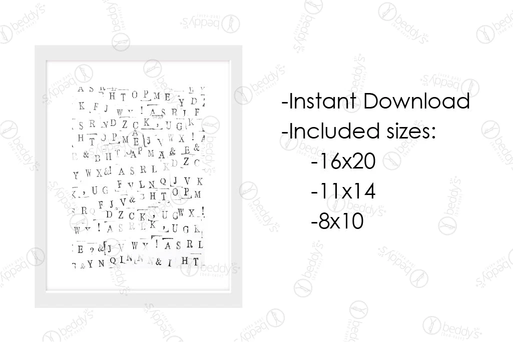 *Digital download includes three PDF files – 8″ x 10″, 11″ x 14″ and 16″ x 20″. The file will be emailed to the email address on your Beddy’s account after your order has shipped.Â