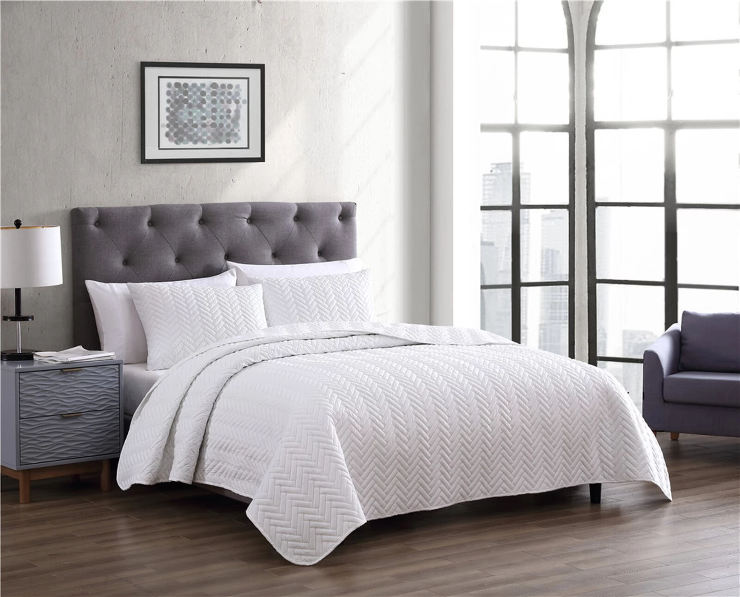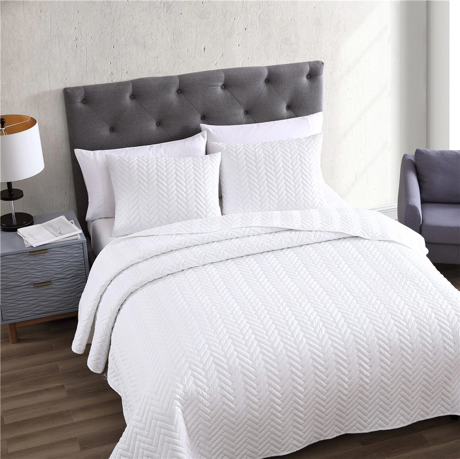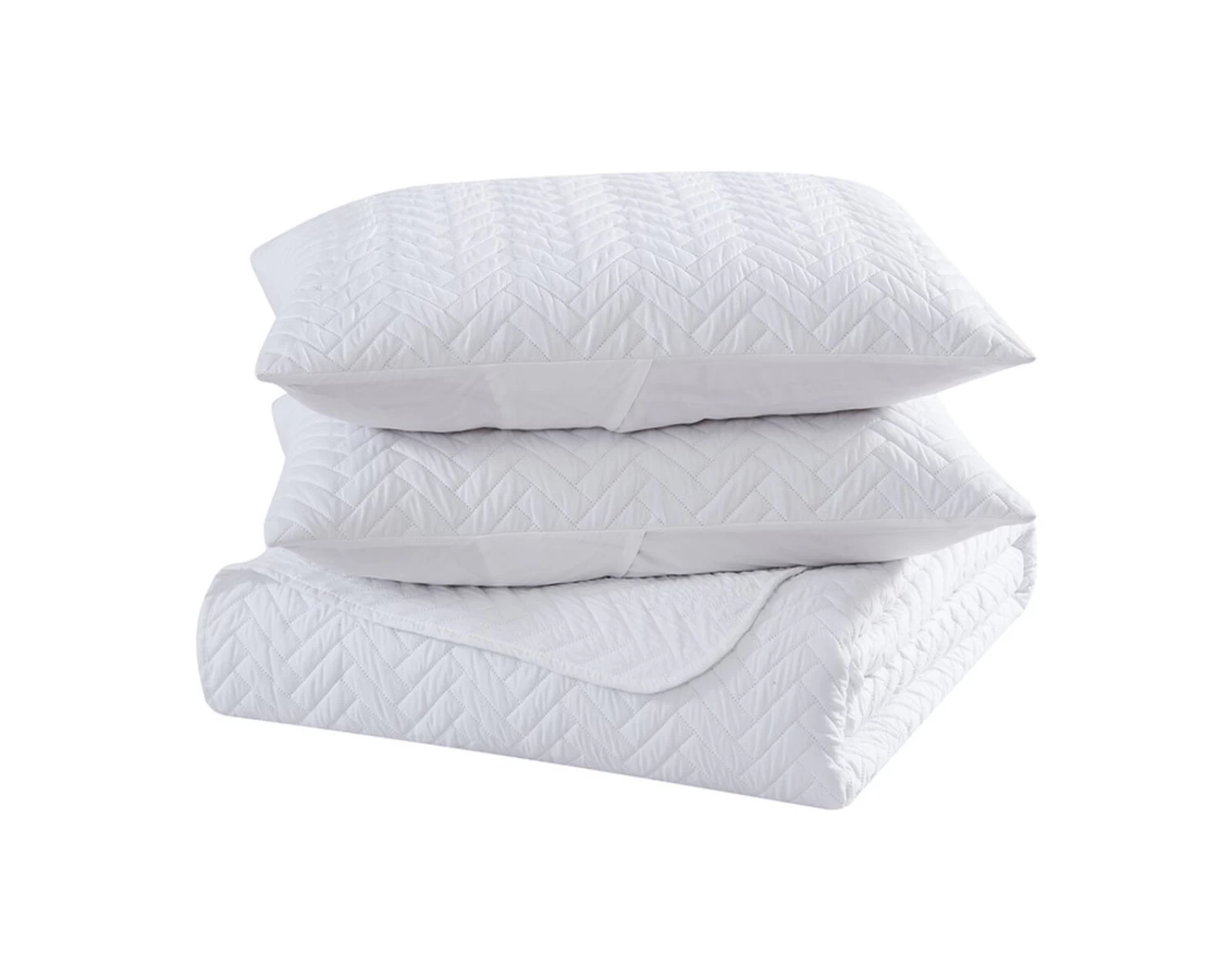 The Nesting Company Birch 3 Piece Quilt Set is simple and sophisticated. With its Herringbone quilting pattern it can give your bedroom a trendy hotel style. Solid colors can also provide a relaxing space – great for winding down after a long day. Made from super soft Microfiber, perfect for year round use. This set is machine washable for easy care.