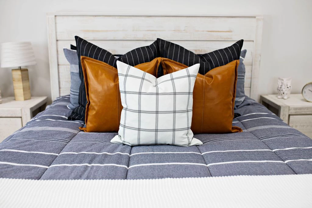 Crisp white and navy 100% cotton pillow cover measures approximately 17″ x 17″ and the insert is not included. But don’t worry, we got you. We offer the best feather pillow insert here.Â