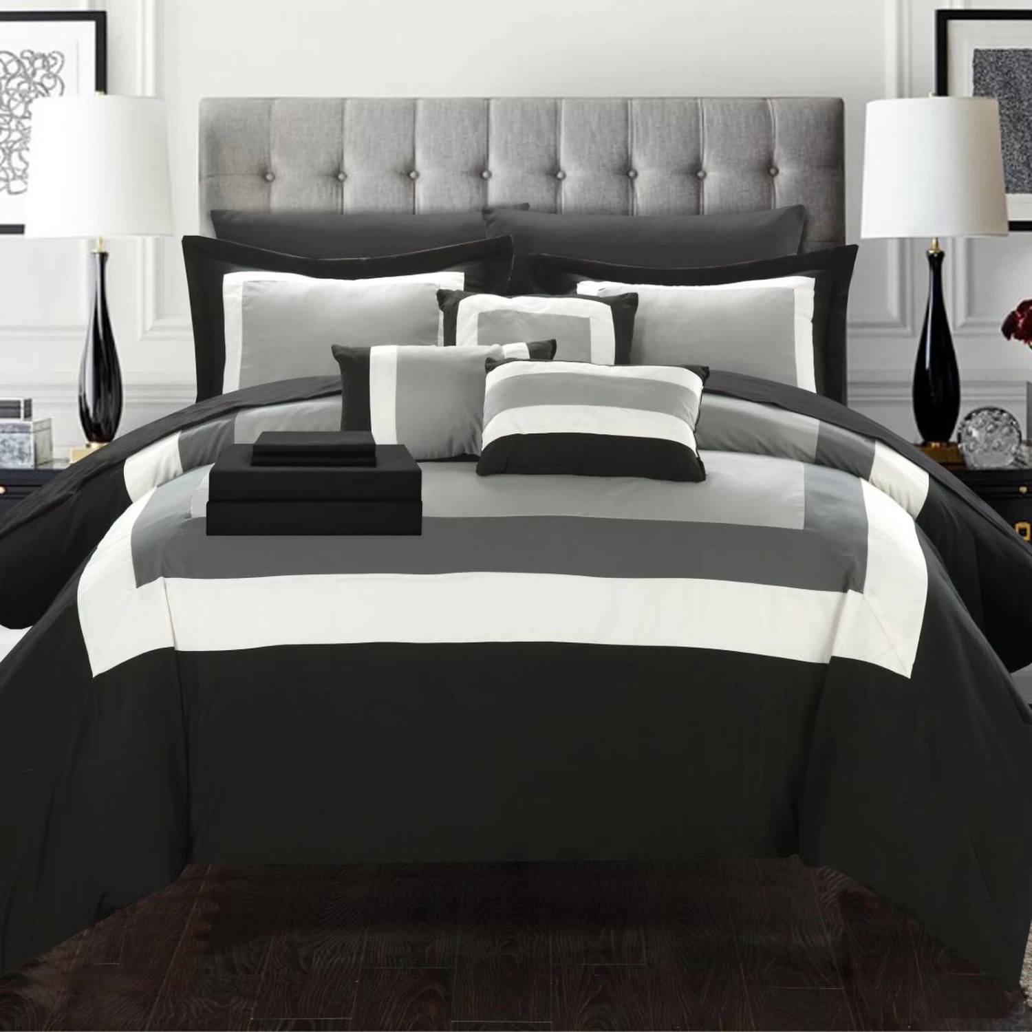 Chic Home CS1464-US Duke Pieced Color Block Bed in a Bag Comforter Set with Sheets – Black – Queen – 10 Piece