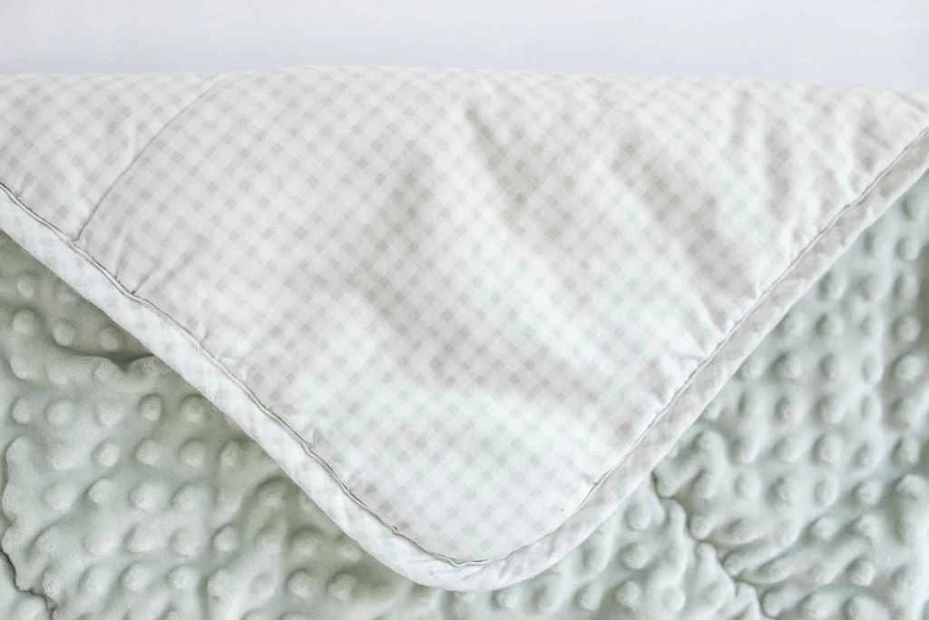 Haven’t tried one of our amazing blankets? Well now is your chance! Featuring soft, breathable 100% cotton green and white gingham fabric on one side with matching sage green plush minky on the other, its double-sided versatility is what sets it apart from other blankets. Use the cooling cotton side when you need just a little coverage for those summer nights on the lawn or bundle up inside the minky for the warmest and coziest cuddle. Beddy’s blankets are the best for temperature regulation and comfort – once you try them, you’ll never look back. We promise.
