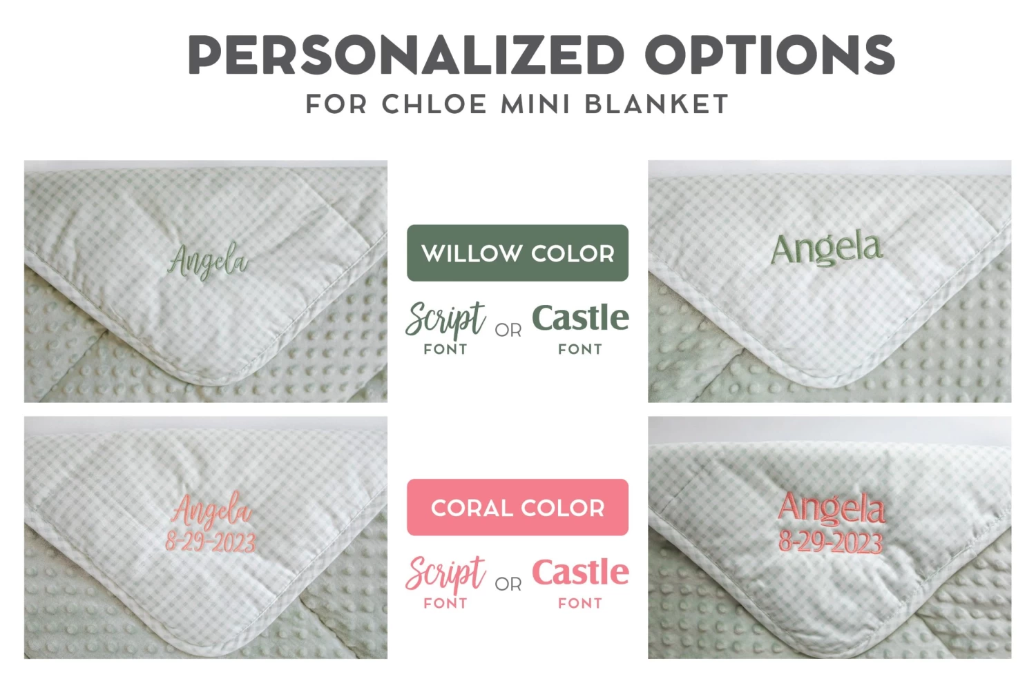 Choose one of two coordinating thread colors and fonts to make a one-of-a-kind personalized gift.