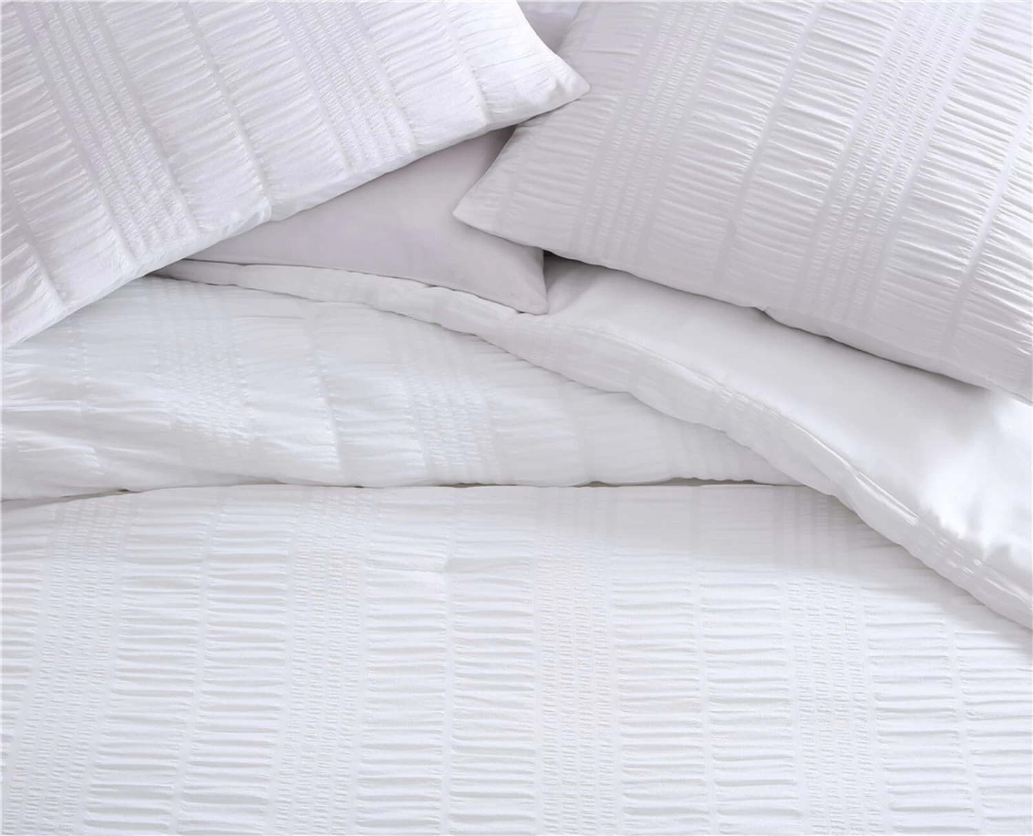 The Nesting Company Elm 3 Piece Seersucker Comforter Set will breathe new life into your space. It’s cloud like feel and soothing color will add a sense of quiet comfort into any bedroom. The Seersucker stripes give depth and dimension to your room as well as an effortlessly stylish look. This set is made from 100% polyester super soft microfiber for a cloud like feel. There are 4 beautiful earth tone color options available for this set, giving it it’s stylish look. This set is machine washable for easy care.