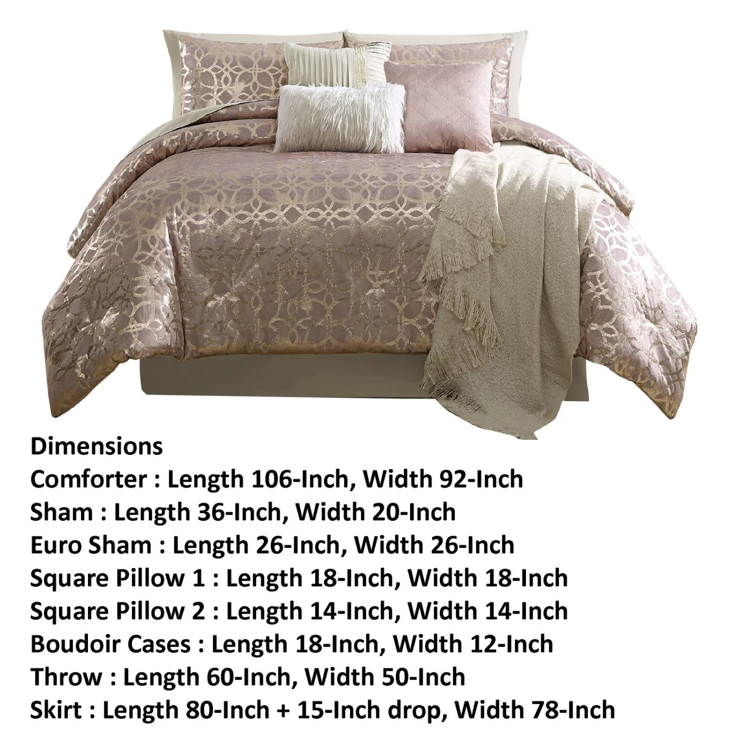Eve 10 Piece King Size Poly Velvet Comforter Set, Foil Pattern, Blush Pink-Benzara