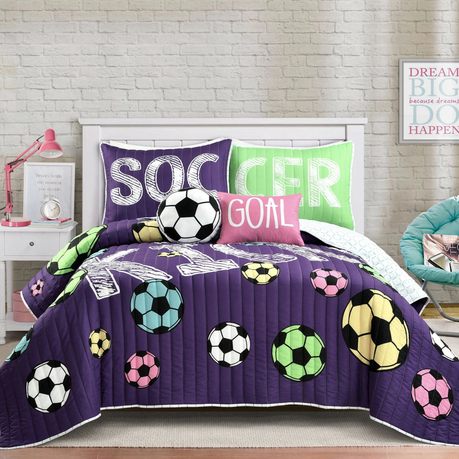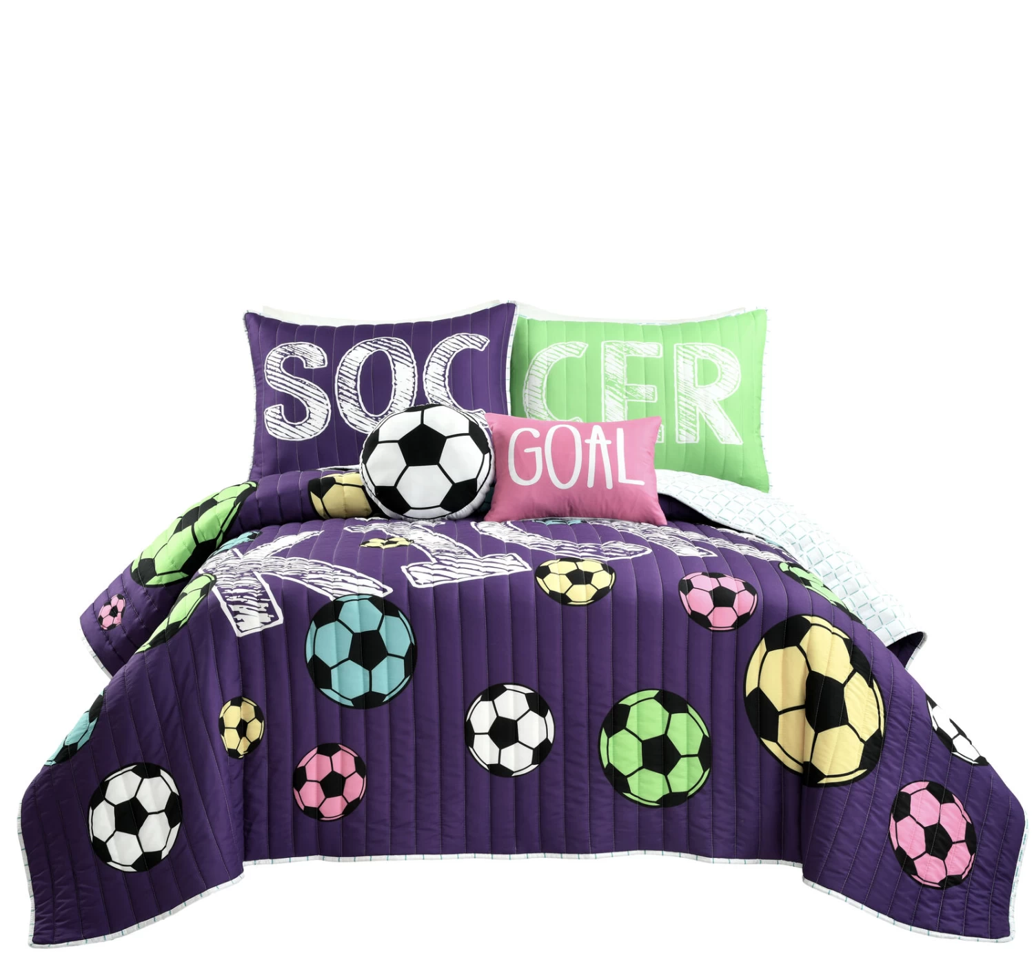 After your star youth soccer player gives it all they have on the soccer field, your child will need a cozy place to get their rest and recoup their energy for the next big game. Look no further than this colorful soccer themed quilt set.