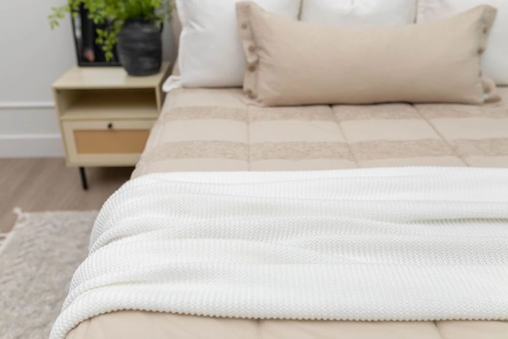 Crisp white 100% acrylic throw measures approx. 51.25 in. x 67 in.
