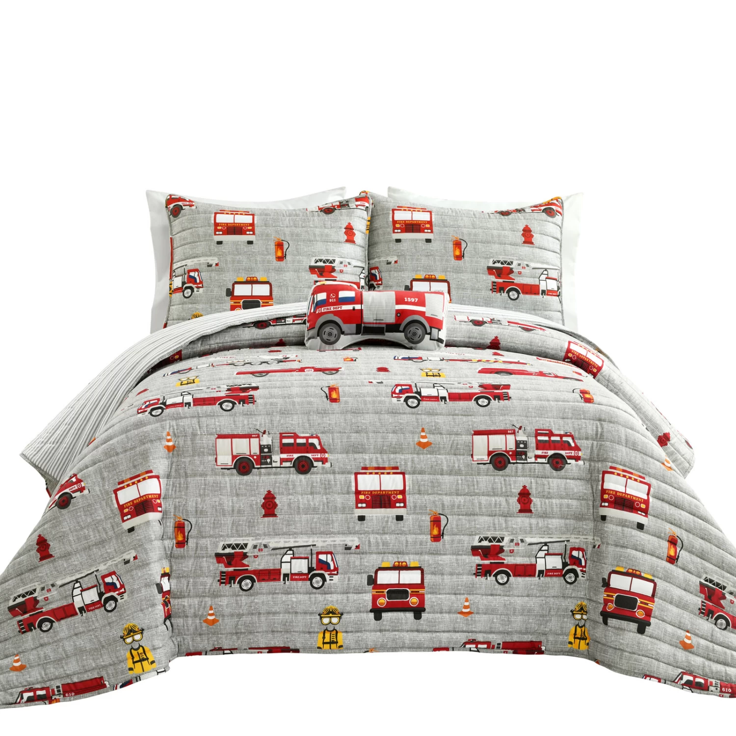 If your child dreams of one day becoming a hero like a firefighter, encourage that dream with this quilt set featuring a pattern of older style and more modern fire trucks, hydrants and more. Sales of this quilt set support the Make-A-Wish Foundation*.