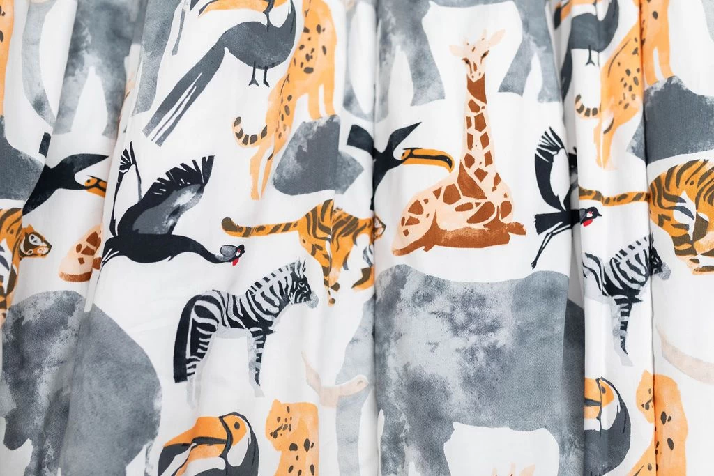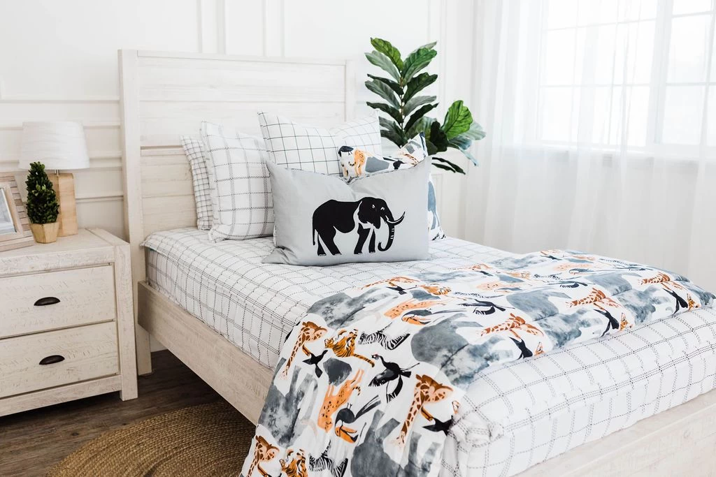 This wild blanket with grays, blacks, and oranges is a game changer: