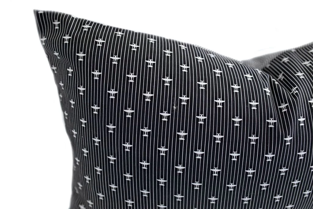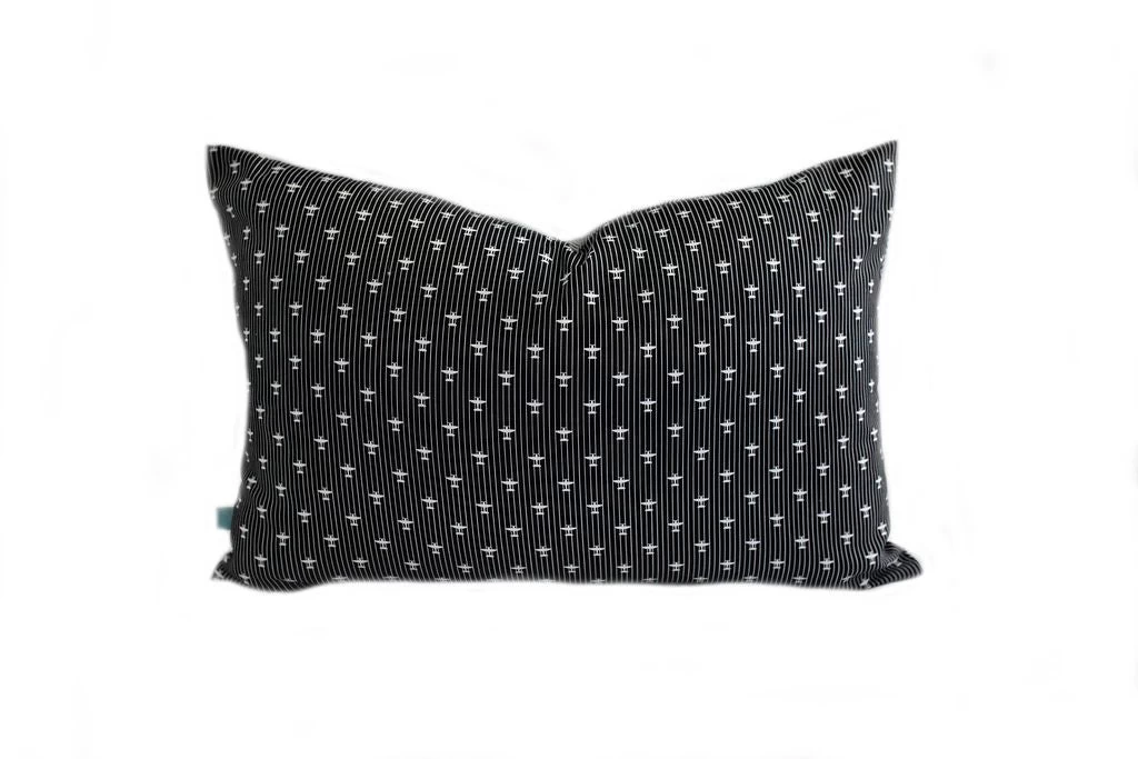 Our Oliver Lumbar double-sided pillow cover gives you twice the looks! Tiny vintage airplane details adorn one side and a neutral herringbone pattern the other.Â