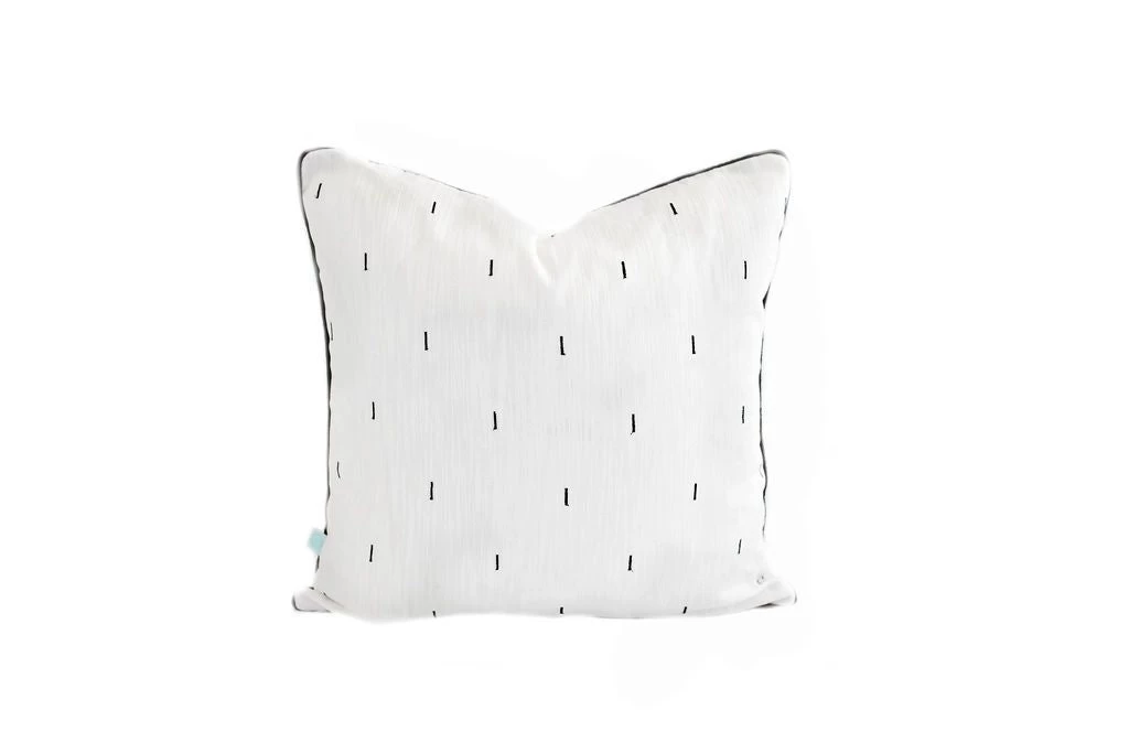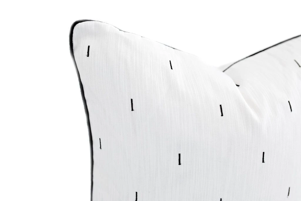 The Oliver Medium pillow cover is all about the details. Black piping, with black embroidery on a woven textured white background is *chef’s kiss*.