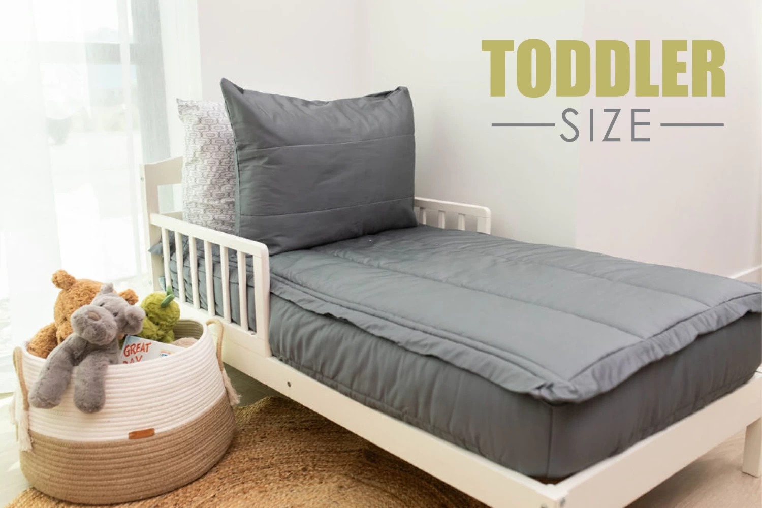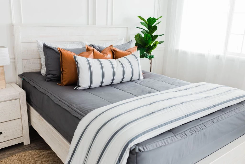 Minky option: Cool Gray exterior fabric is 100% cotton, interior white minky is 100% polyester and interior white & gray base sheet is 100% cotton.