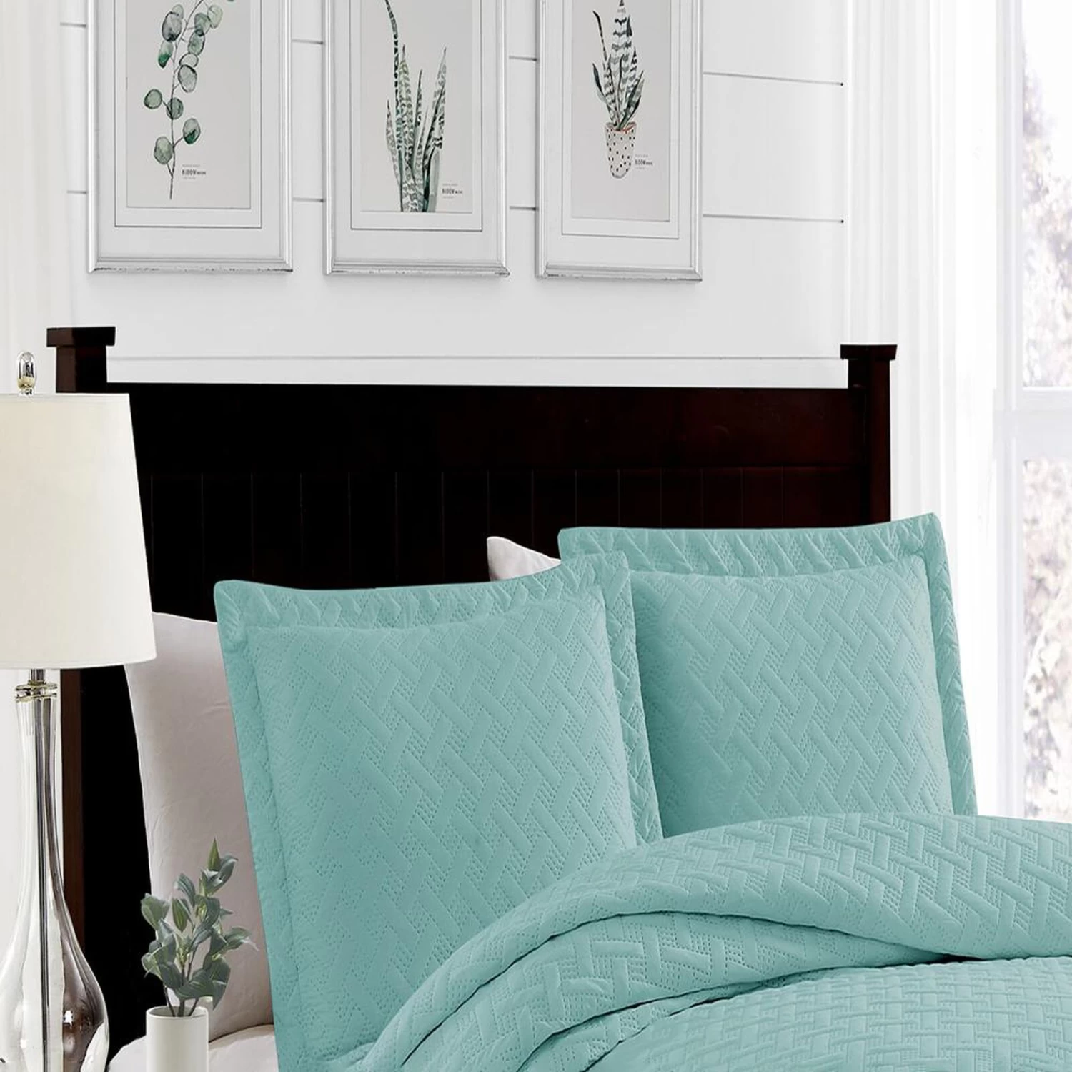 Perfect choice to revitalize your bedroom with a touch of serene aqua elegance. Crafted with utmost care and attention to detail, this quilt set offers exceptional quality and style. Its premium pinsonic stitching ensures a visually captivating texture that adds depth and sophistication to your bedding ensemble. Made with superior materials, this quilt set is designed to provide comfort and coziness all year round. Transform your bedroom into a peaceful sanctuary with the revitalizing aqua color and size variation is king (includes: 1 Quilt (102″x86″), 2 Shams (20″x36″) of the Bella 3 pieces Pinsonic Quilt Set and indulge in a restful sleep experience.