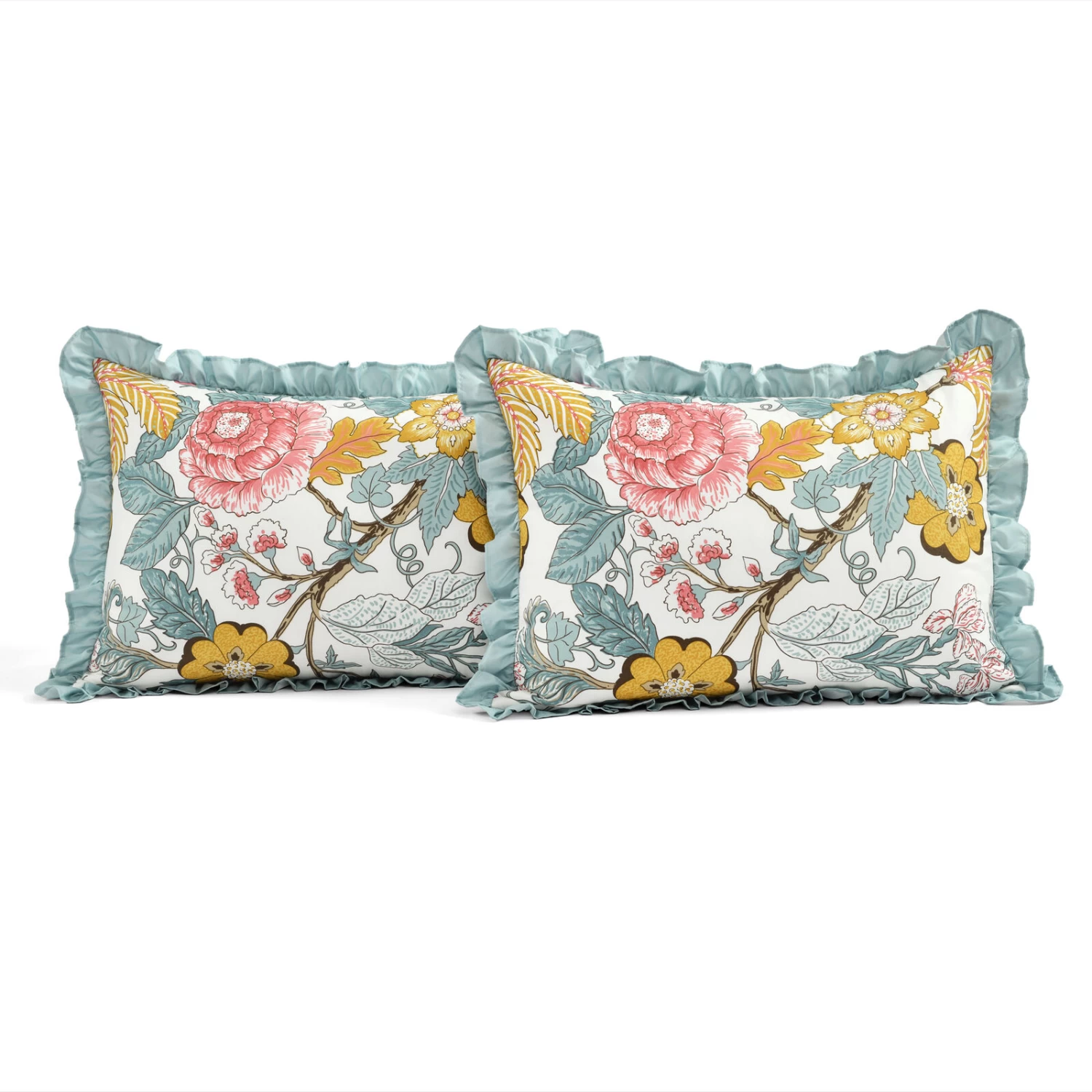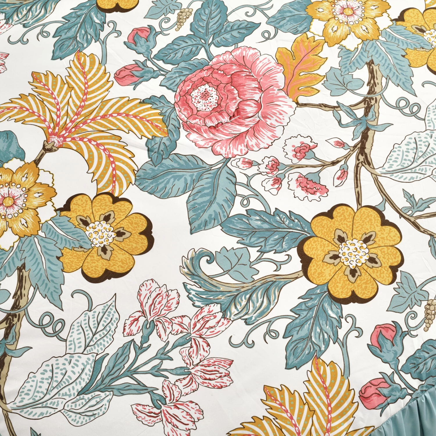 This bedspread set is the perfect piece to update your master or guest bedroom with vintage beauty and country cottage style. The colorful floral print adds life to any room and the ruching and ruffles add a chic vibe. Available in queen or king size.