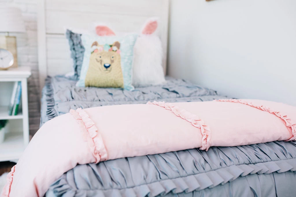 This blush pink blanket with dainty ruffles is a game changer: