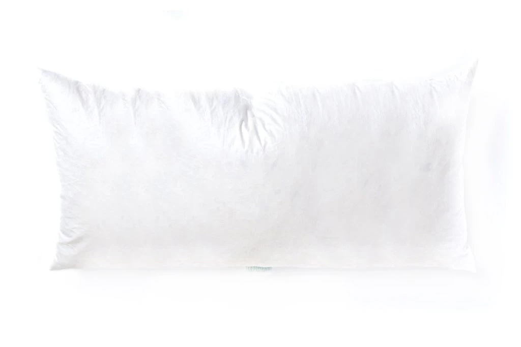 Approximately 17″ x 39″, this feather pillow insert fits our XL Lumbar pillow covers.